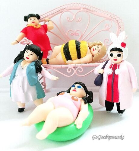 ビニール袋の中から、丸い身体がごろごろ。渡辺直美コレクションフィギュア第2弾。家のうさぎたちも、なんだ?なんだ?と見にやって来ました。ほら、これがインスタ女王のワタナベナオミちゃんだよ。小さい方のうさぎが、ナオミちゃんを、両手でバスっとし…