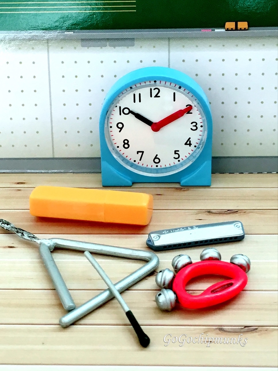音楽室編・・・トライアングル、すず、ハーモニカ(ケース付)。