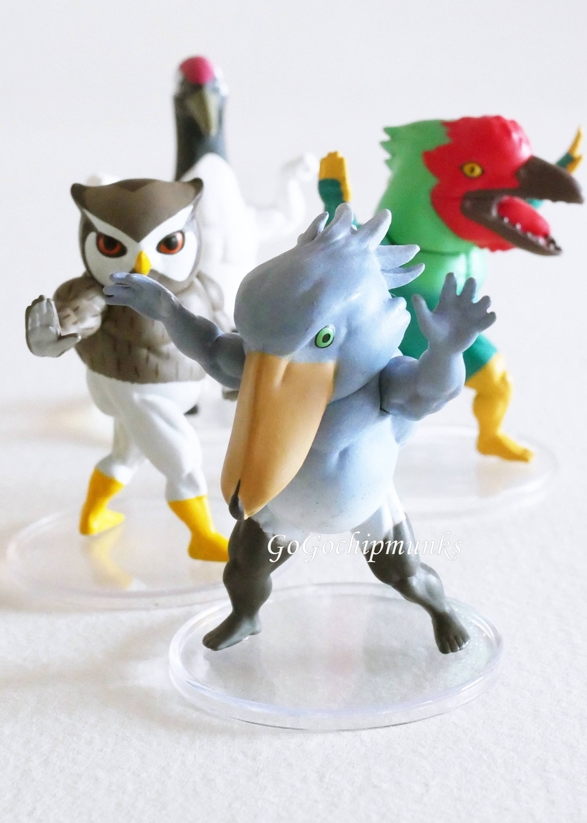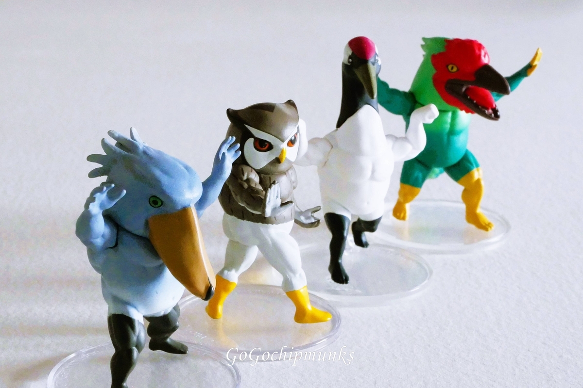 各シリーズから集めたのは、ハシビロコウさん、始祖鳥さん、アフリカオオコノハズクさん、そしてツルさんの4羽。いずれも、飾るだけで空気がビリビリ震えそうな迫力です。