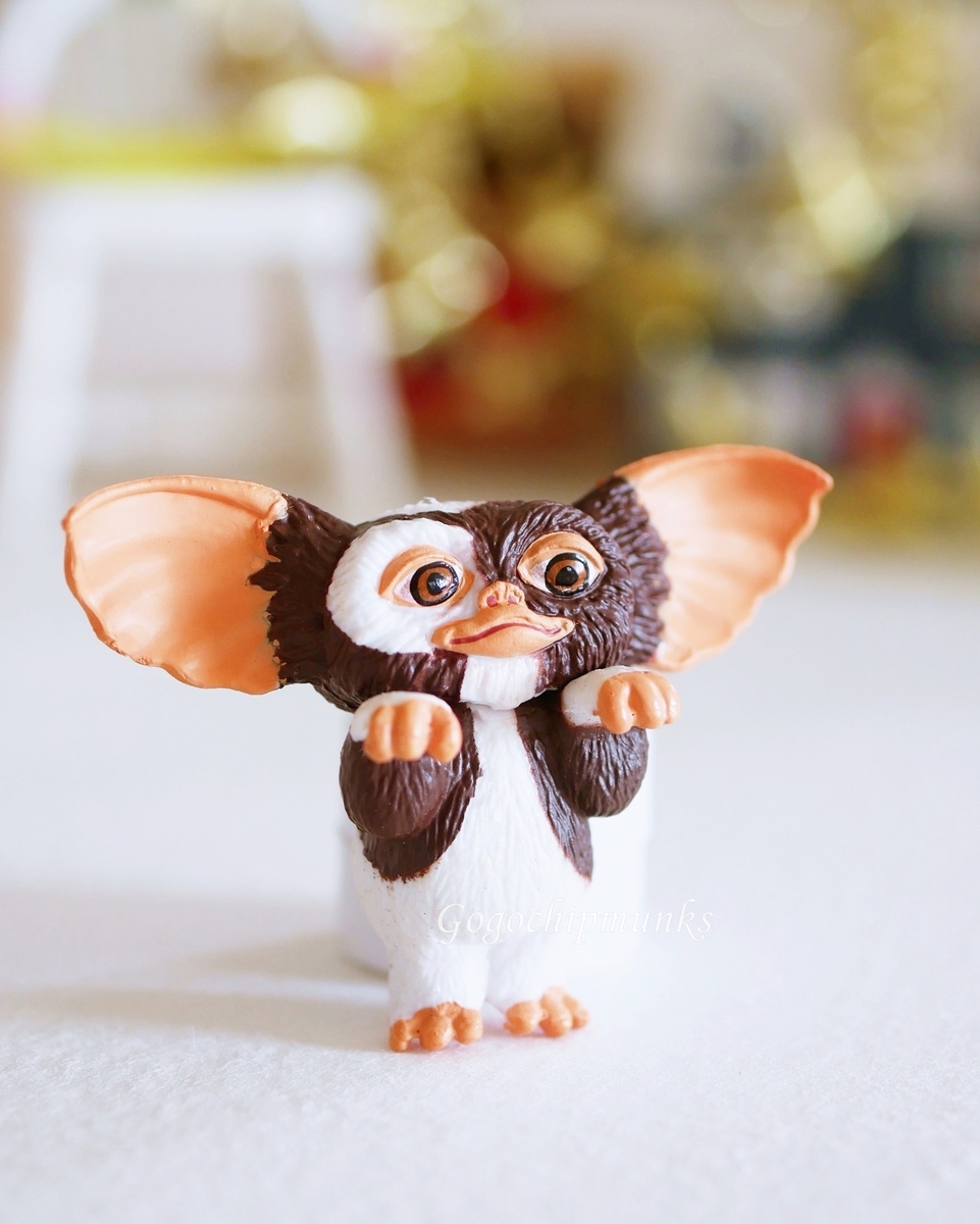 小さな体に大きな耳、困り顔、好奇心いっぱいのキラキラしたまなざし。どの角度から見てもギズモらしさがあって、映画の中のシーンが手のひらサイズで再来です。