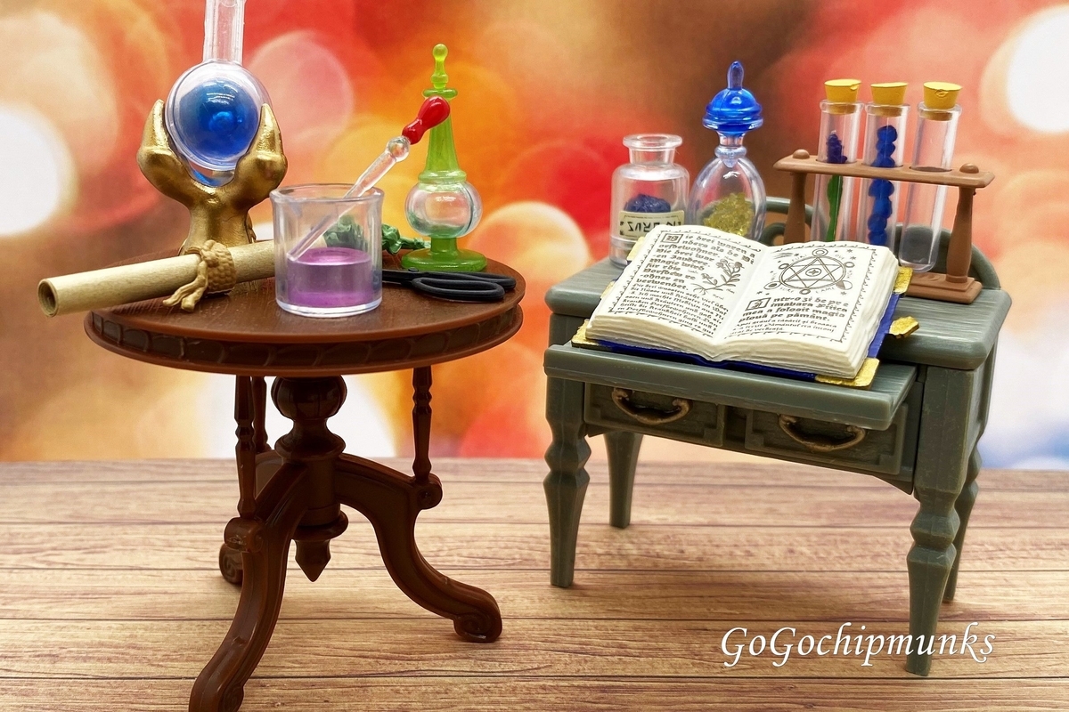 おまちかねのリーメントの魔女の住む家。わくわくしながら魔法グッズを並べてみると、そこには、ハリーポッターのハーマイオニー、魔女の宅急便のキキの暮らしが。